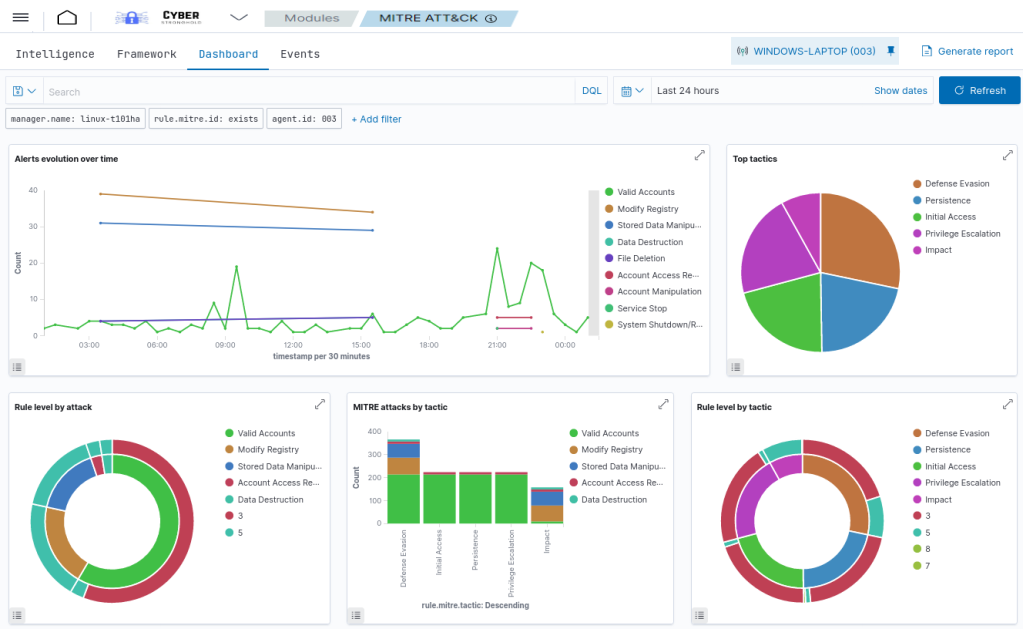 Easily View emerging threats and logs, detecting MITRE Tactics